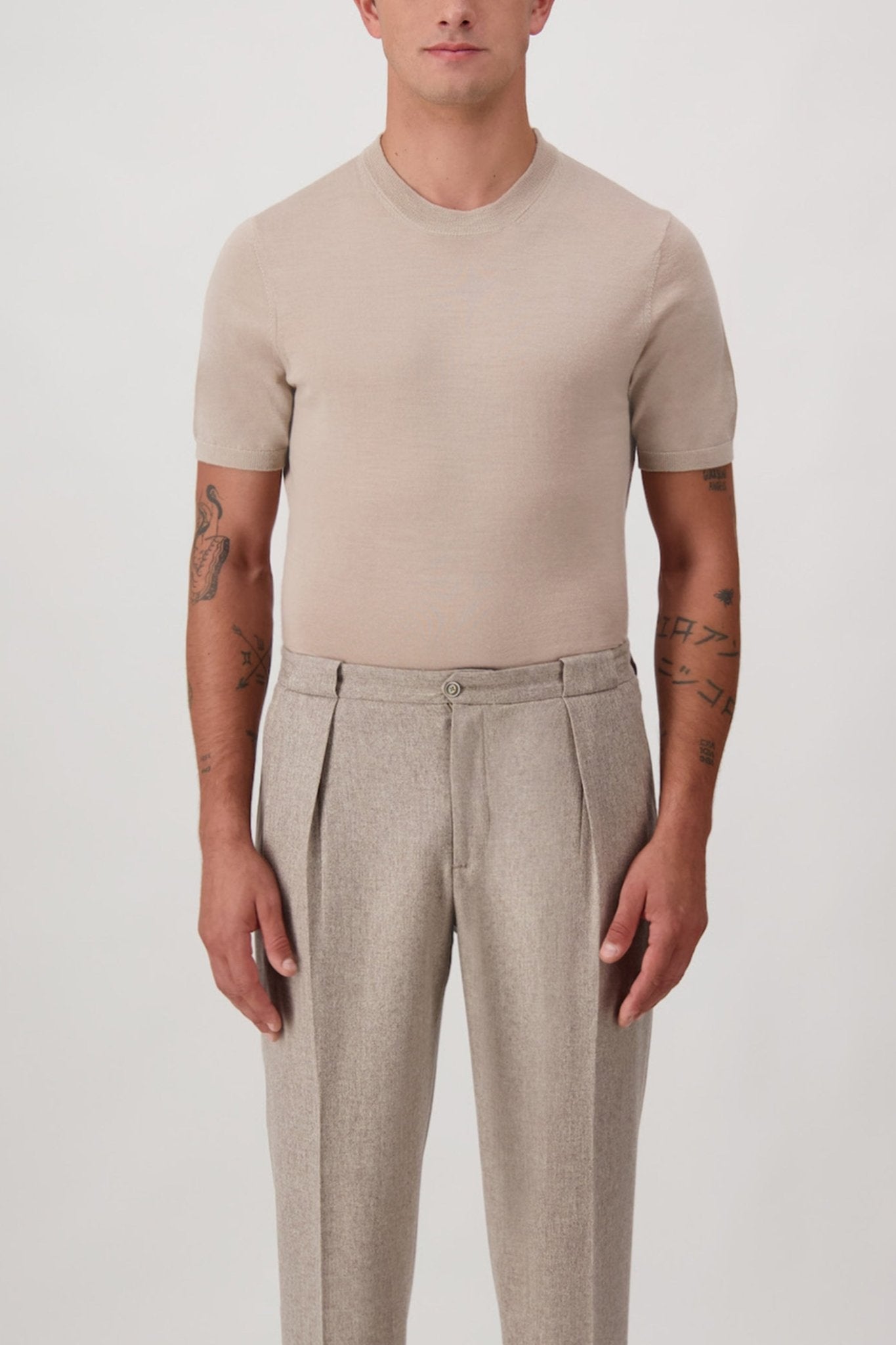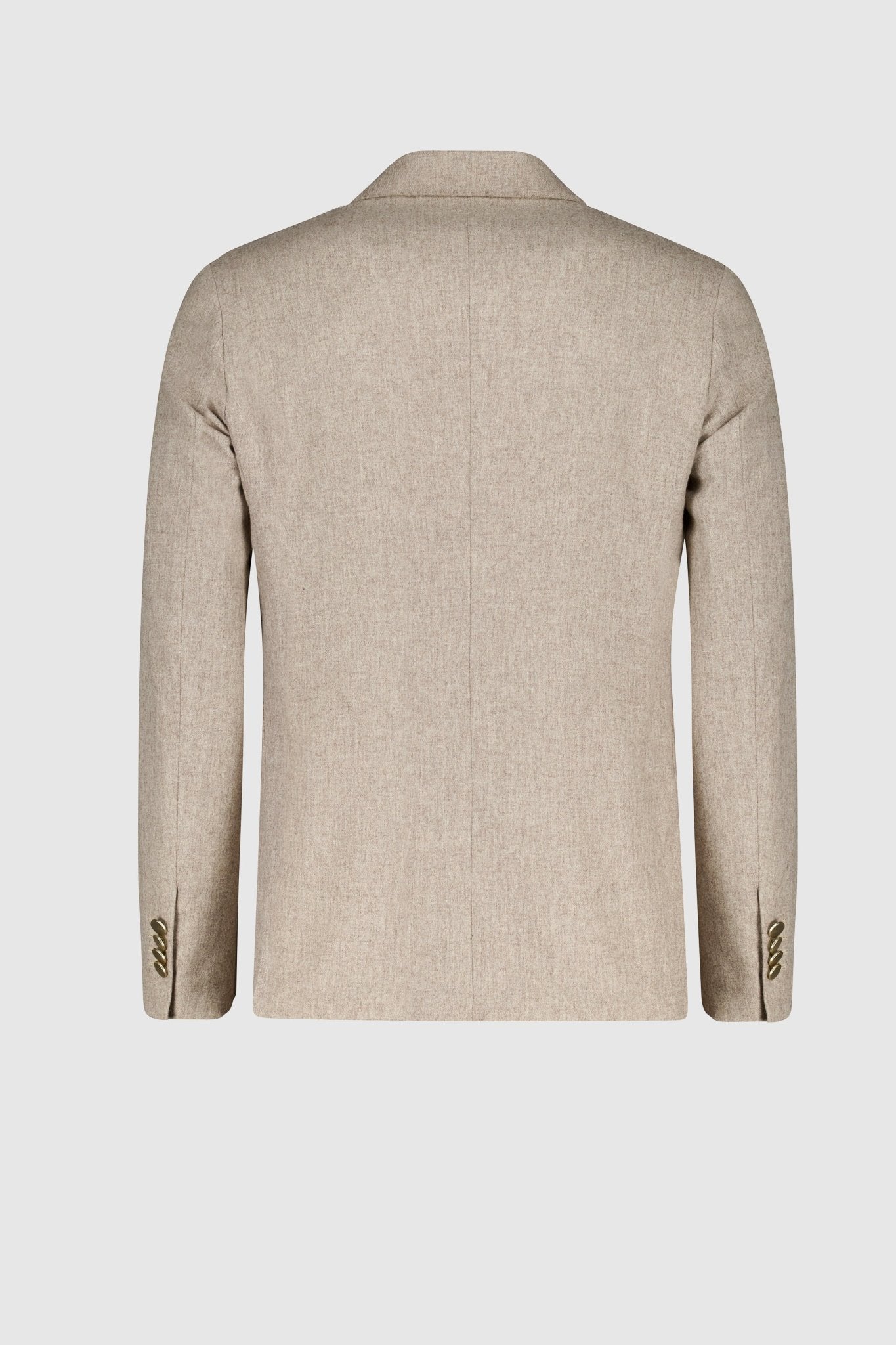 Elegante giacca doppiopetto realizzata in un pregiato tessuto melangiato dalle tonalità naturali. Il modello presenta raffinati revers a lancia, una chiusura frontale a sei bottoni in metallo lucido e pratiche tasche applicate che aggiungono un tocco di contemporaneità alla sua linea classica. Il taschino sul petto completa il design con un dettaglio sartoriale discreto e sofisticato. Il modello è alto 188 cm e indossa la taglia 50.
