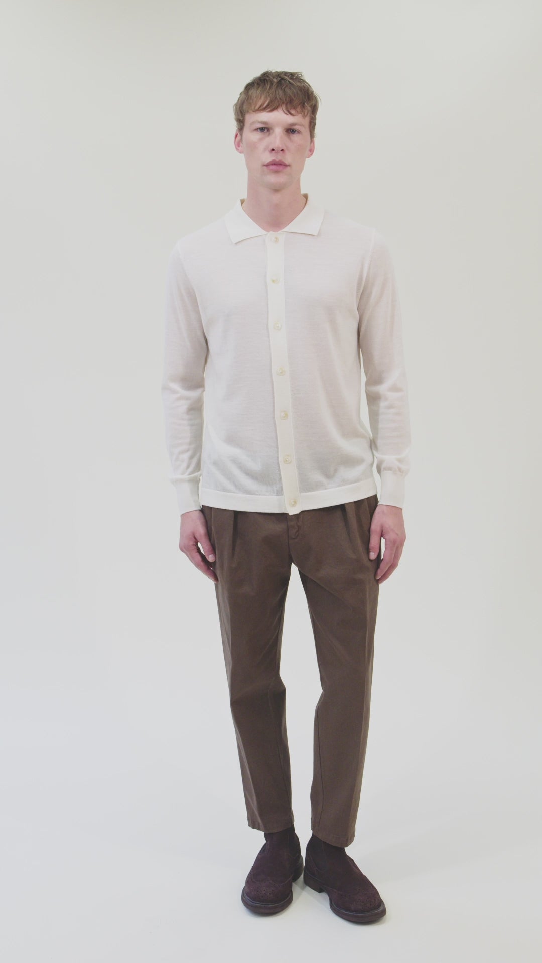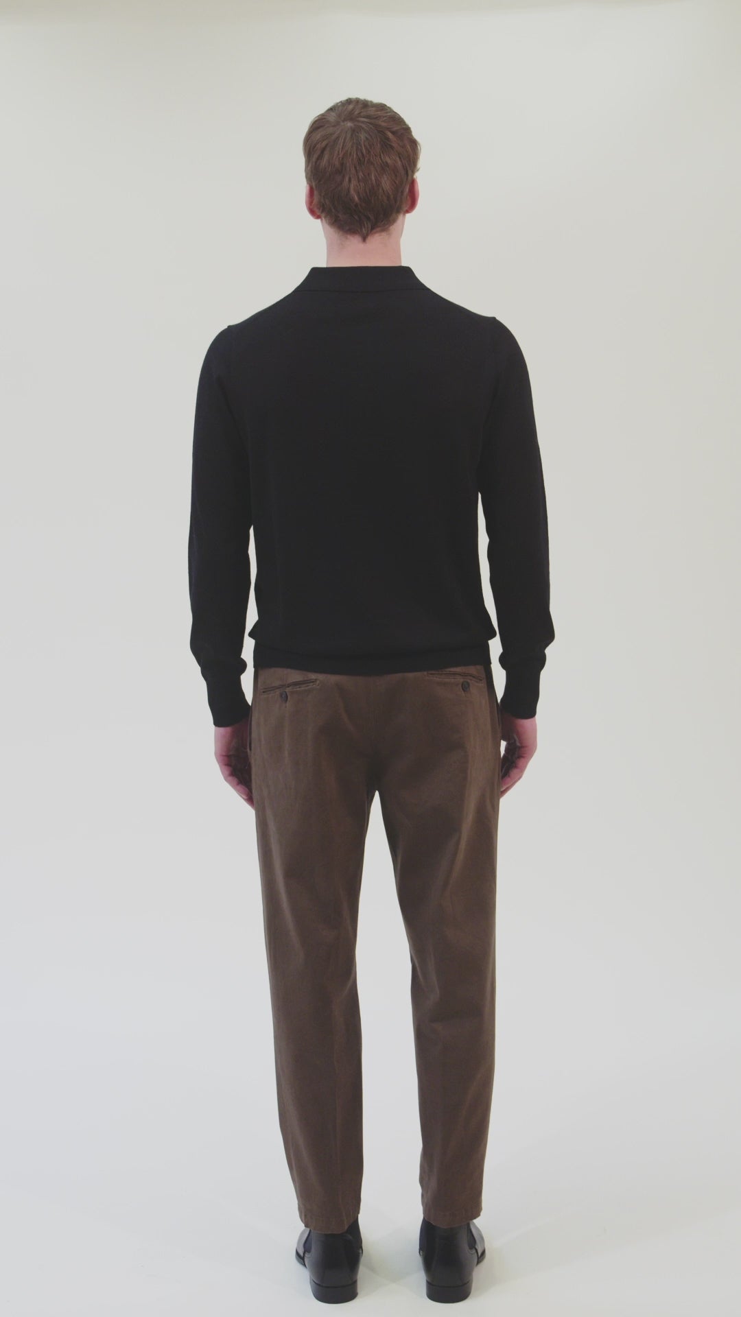Exquisitely tailored gabardine trousers, featuring subtle front pleats and subtle elastic side panels for unparalleled comfort. The refined silhouette features an elegant zip closure and stylish slant pockets.