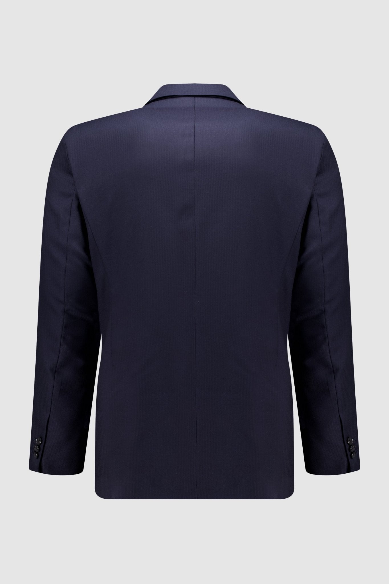 Double-breasted jacket with peak lapel, welt pockets and a breast pocket. Straight cuff with three buttons.