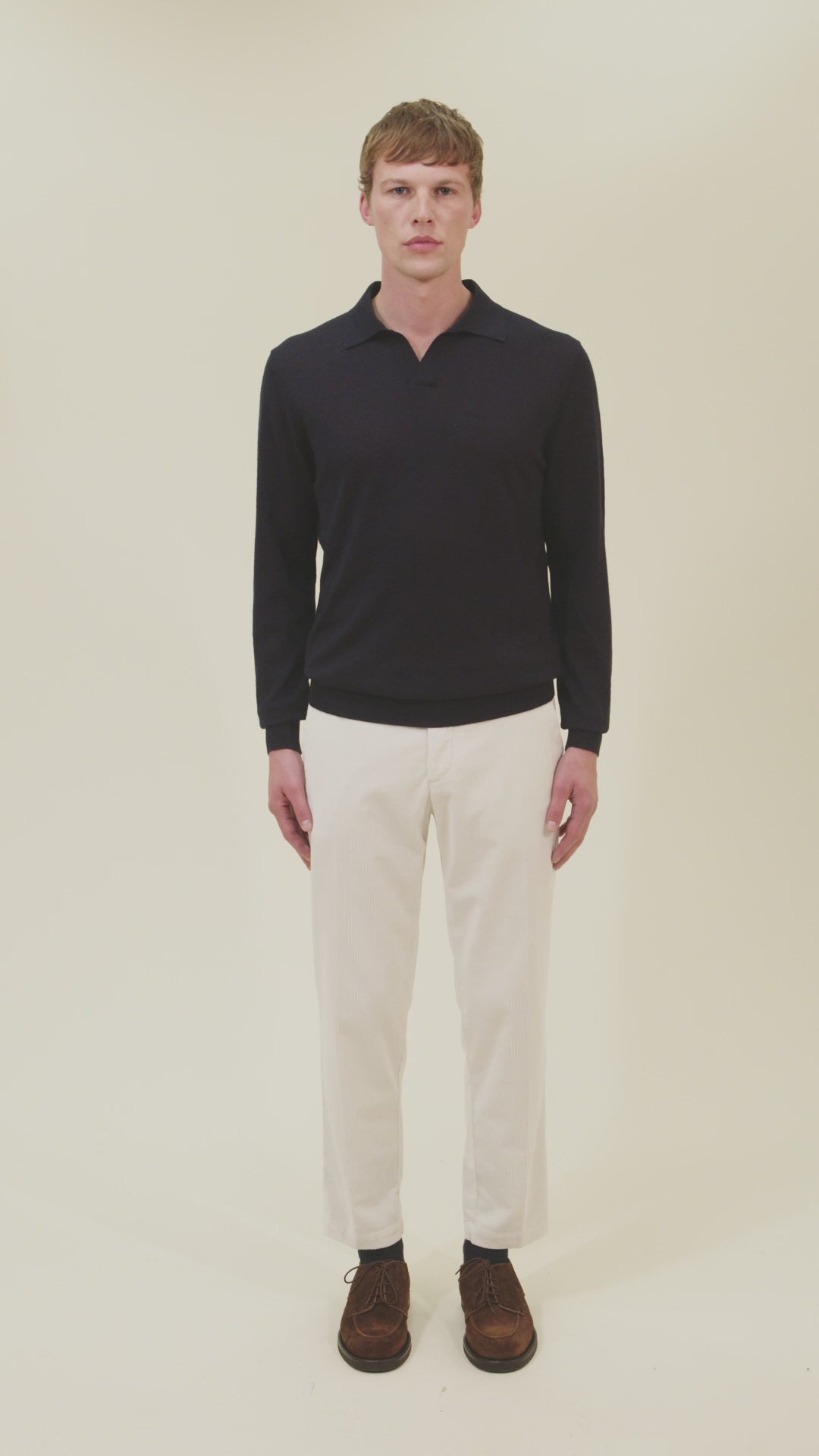 Long-sleeved plain polo shirt. Gauge 16.