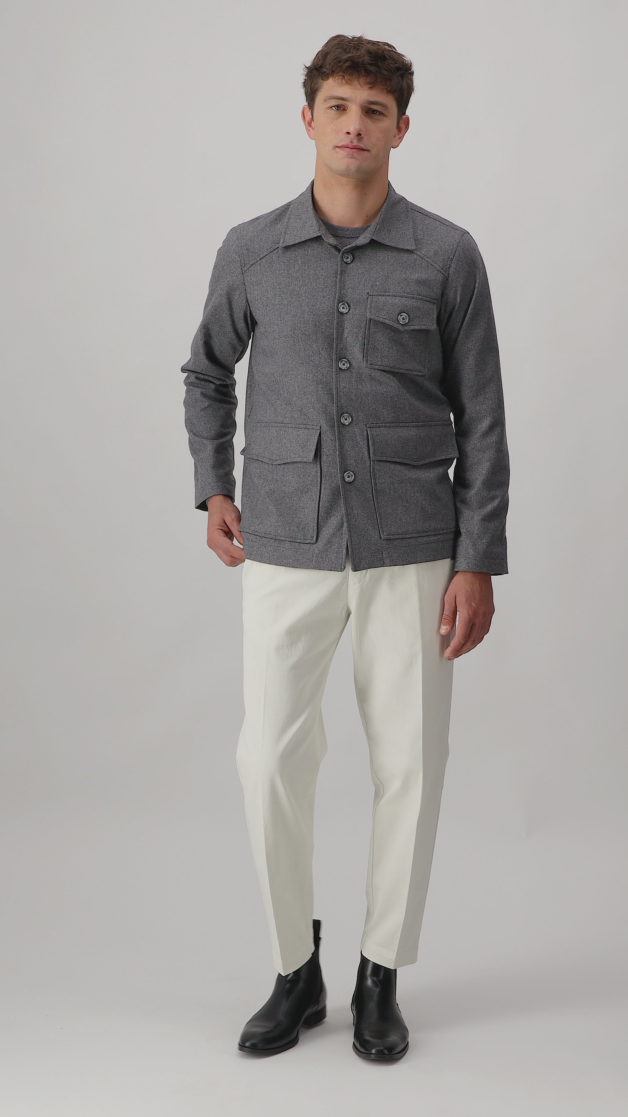 Made in Italy. Cashmere blend jacket, characterized by a soft and compact feel. The simple design, with front pockets and a button closure, reflects an understated and contemporary elegance. A refined piece, ideal for completing formal or casual looks with a touch of discreet luxury.