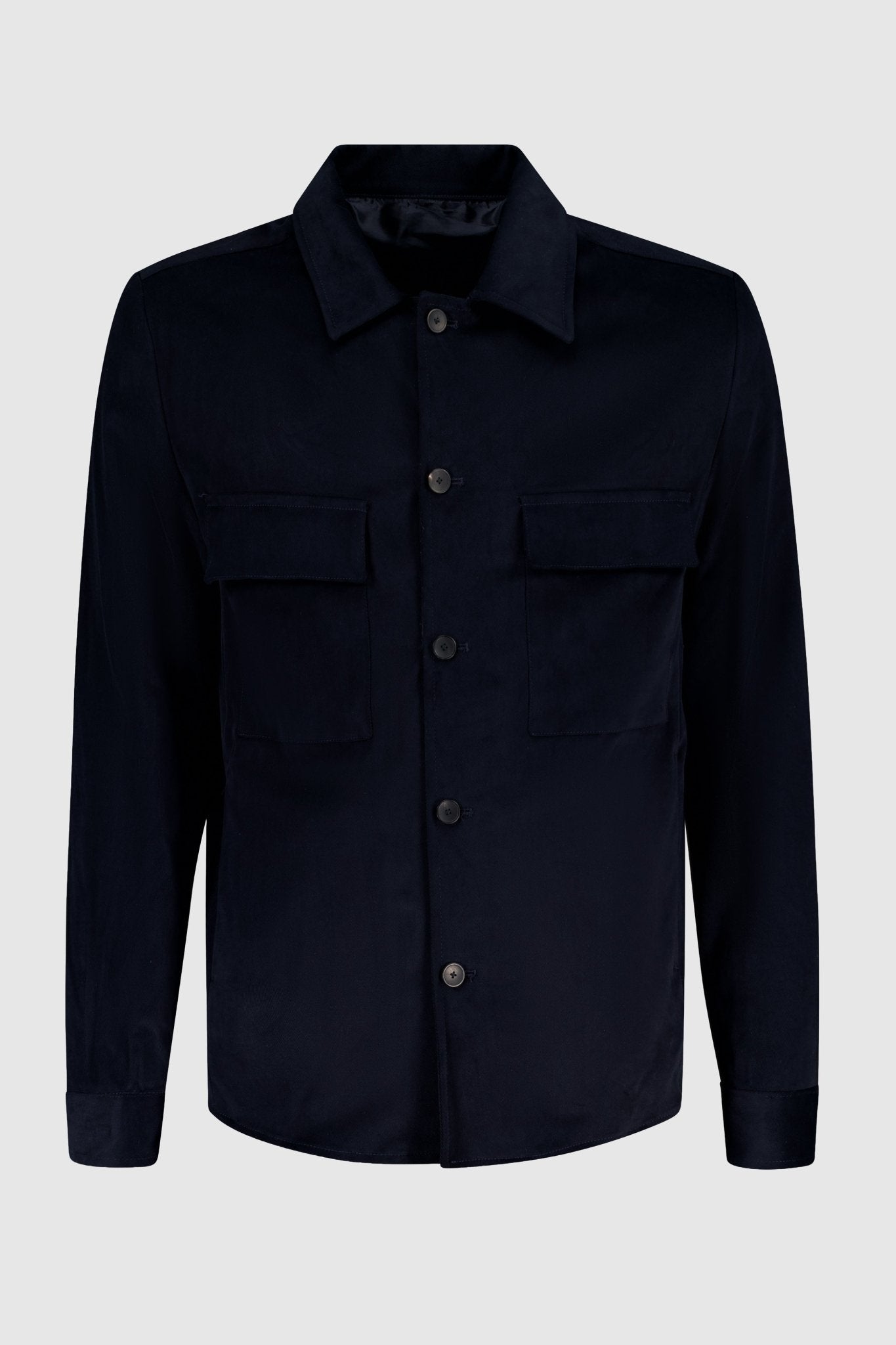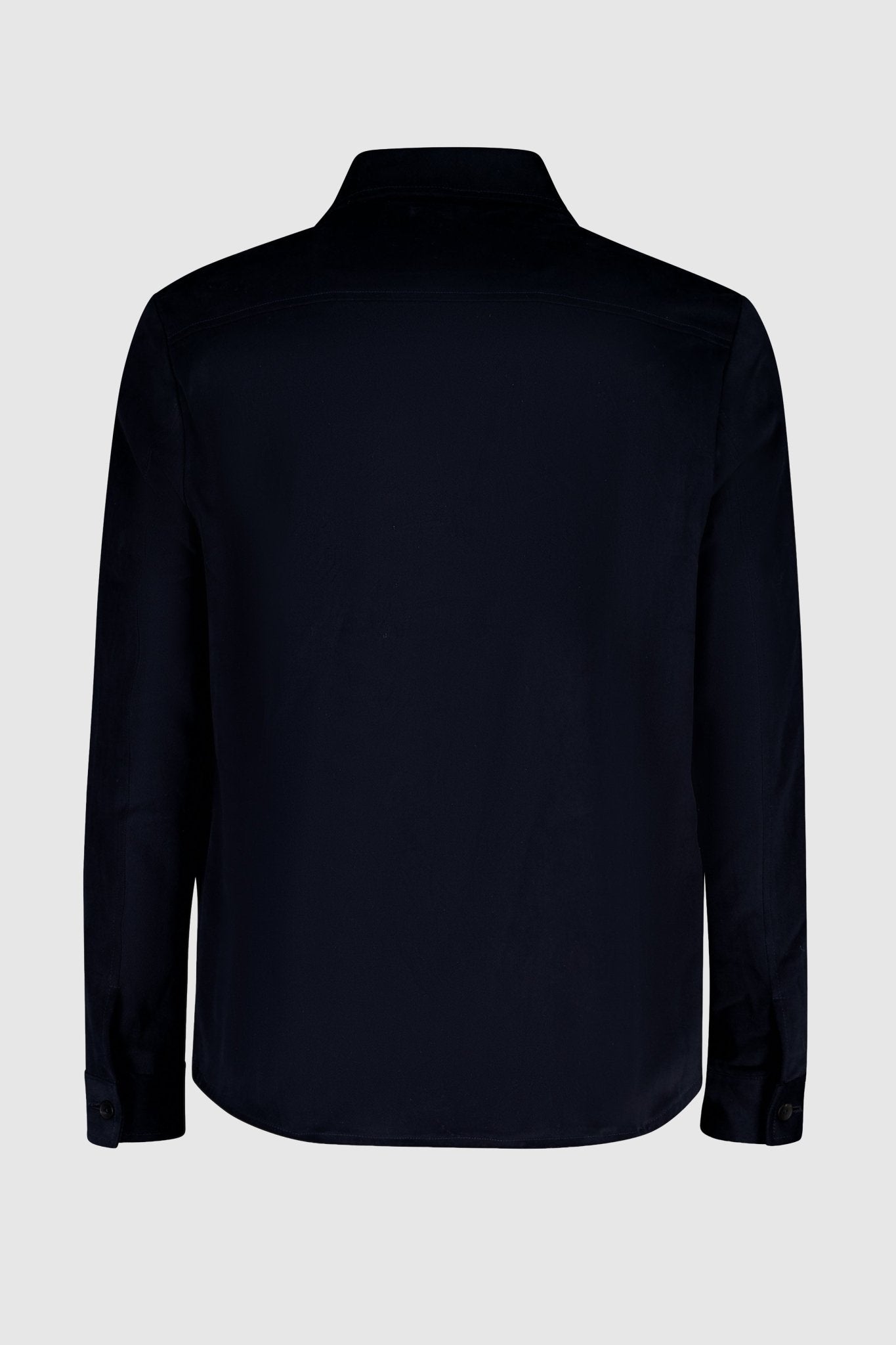 Elegante overshirt realizzata in un tessuto morbido e compatto, caratterizzata da un design essenziale e contemporaneo. Il modello presenta un colletto classico, chiusura frontale con cinque bottoni e due tasche applicate sul petto con pattina, che aggiungono un tocco funzionale e raffinato. Le maniche lunghe con polsino dritto completano la silhouette pulita del capo.