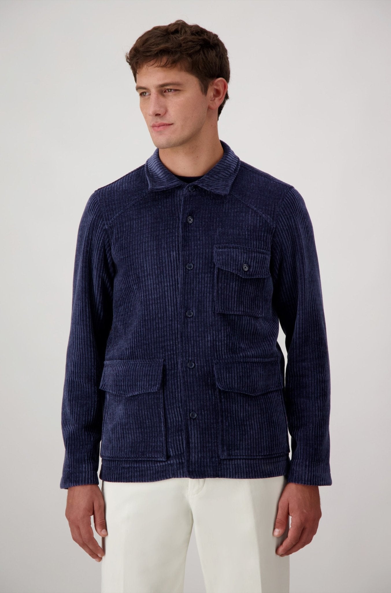 The patch pockets and horn buttons underline a discreet and functional elegance.